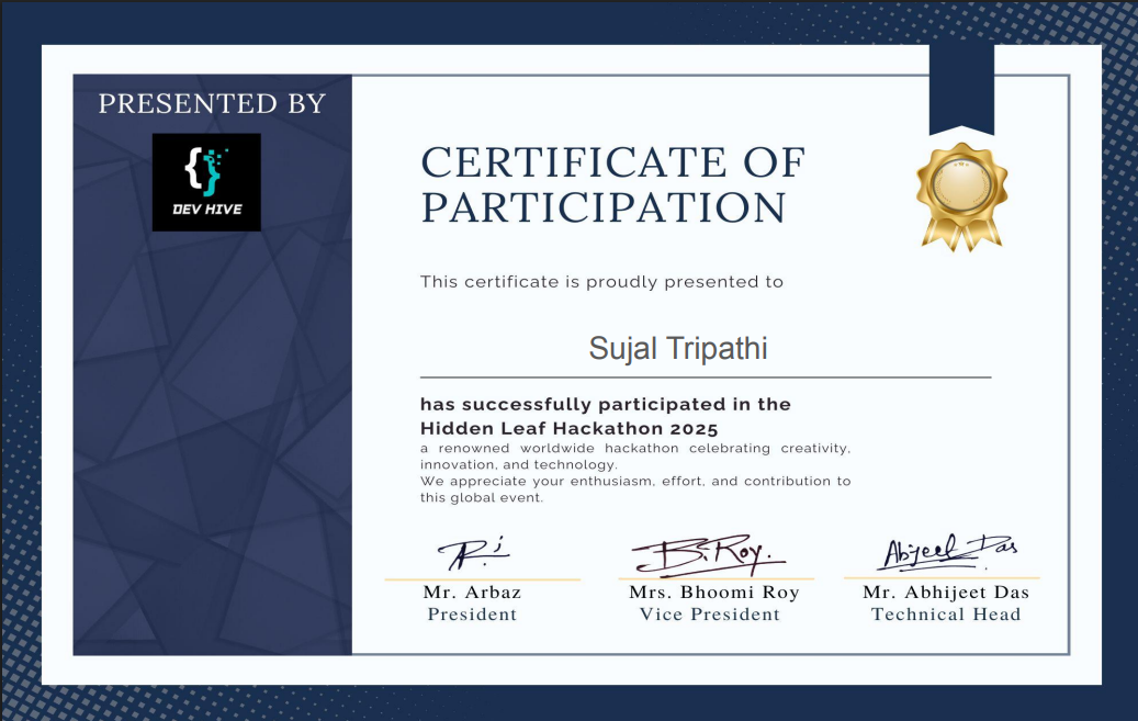 Hello! I'm Sujal Tripathi, a passionate developer based in Surat, Gujarat. I specialize in building exceptional digital experiences using the MERN stack and modern web technologies. Super Contributor of hacktoberfest 2025.